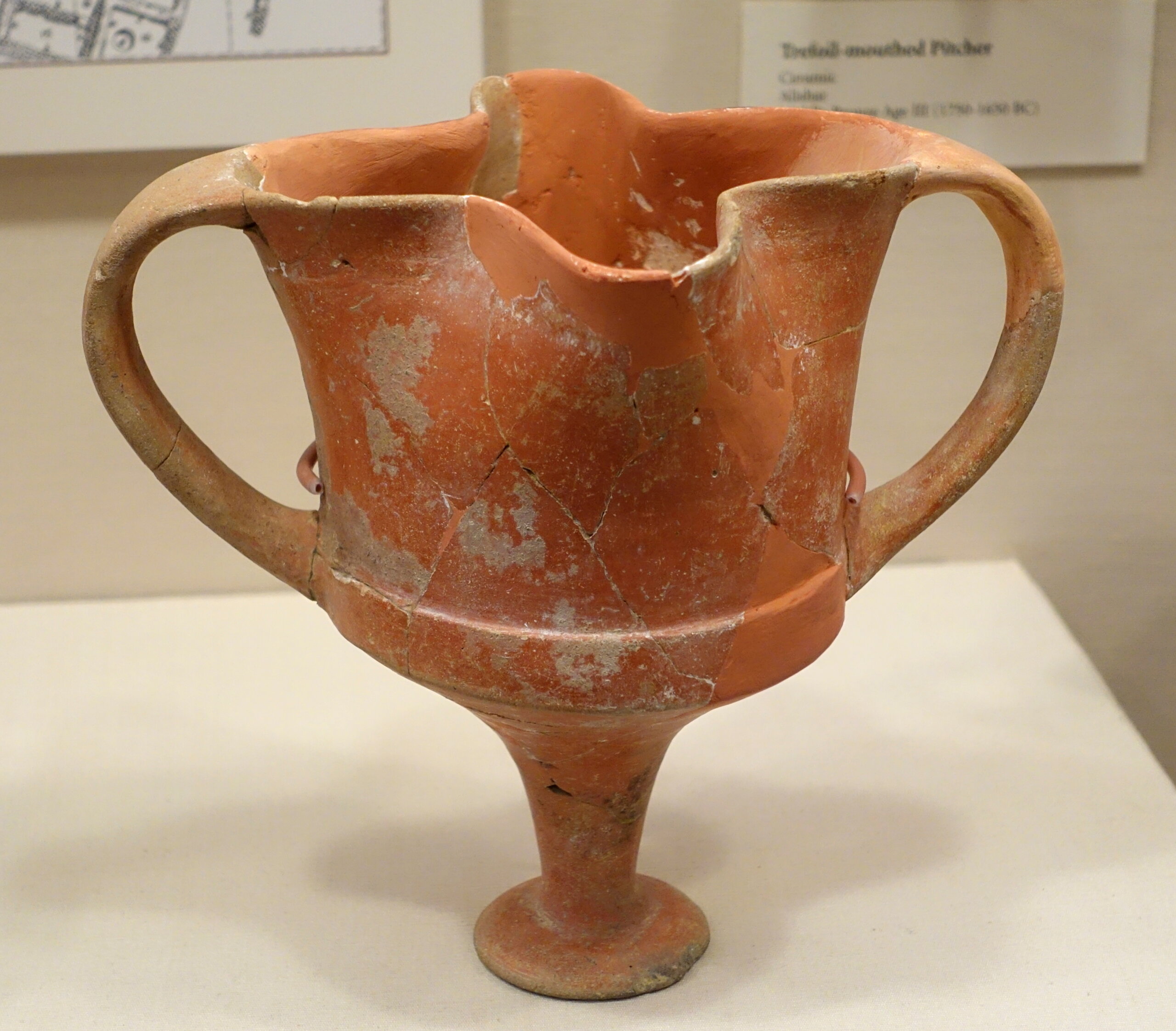 גביע על רגל עם “4 אגפים” מאנטוליה. עיצוב גביעי חרס (Terracotta) שנתגלו בחצור הושפע מגביעים כאלה. שלהי תקופת הברונזה (Bronze) התיכונה או תחילת תקופת הברונזה (Bronze) המאוחרת.