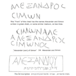 גלוסקמה עליה כתובות ביוונית "אלכסנדרוס" "סימונוס" (אלכסנדר בן סימון או אלכסנדר וסימון), וגם כתובת בעברית: "אלכסנדרוס קרנית" (אלכסנדרוס מCyrene, לוב).