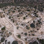 חרבת קייאפה (דרומית לבית שמש). צילום אוויר של החפירות. בצילום השני: אחד משני שערי העיר. ישוב (בעיקר) מתקופת הברזל 1