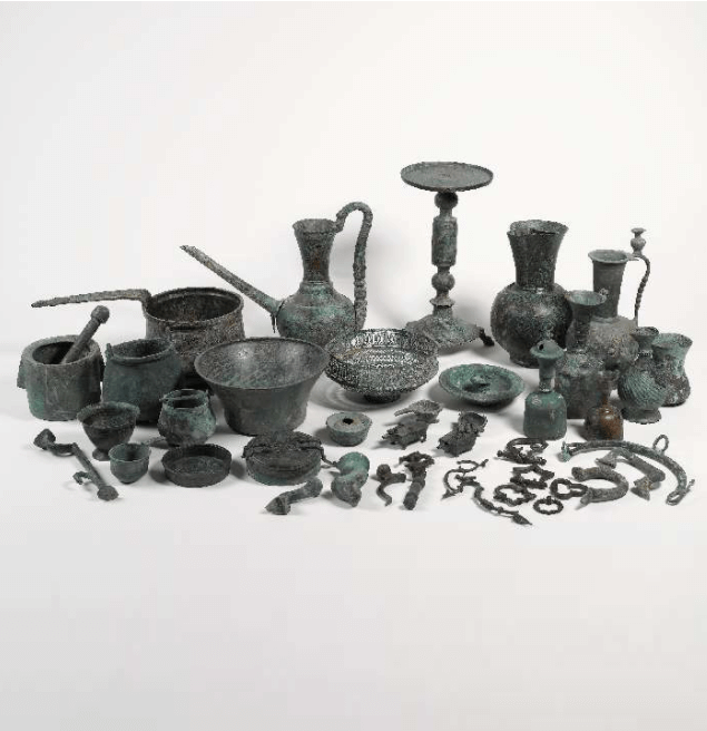 כלים ממטמון של כ-800 כלי מתכת איסלמיים שהתגלו בחפירות שנערכו בטבריה העתיקה ב-1998. המטמון התגלה בשלושה פיטסים גדולים שהוטמנו מתחת לרצפות מבנה ששימש כנראה כבית מלאכה. כמו כן נמצאו אלפי פיסות מתכת וכשמונים מטבעות . הכלים מיוחסים לתקופה הפאטמית (1099-969 לסה"נ ). התארוך נקבע בעיקר לפי המטבעות שנמצאו בפיטסים. זהו אחד המטמונים הגודלים מהתקופה שהתגלו אי פעם בעולם. התקופה האיסלמית הקדומה.