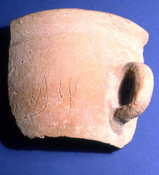 כן לנר שבת עם כתובת לפני הצריפה "שבת". חורבת עוצה (מזרחית לעכו). התקופה הביזנטית