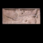 לוחית שנהב עם גריפון או דמות מיתולוגית מכונפת ממטמון השנהבים שהתגלה במגידו. שלהי תקופת הברונזה (Bronze) המאוחרת