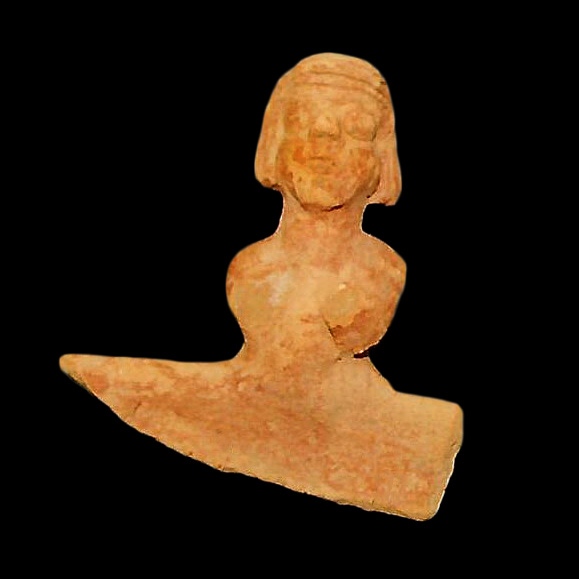 שבר כלי (Vessel) (קערה פולחנית?) עם דמות של מנגן. פלישתי. תקופת הברזל 1-2