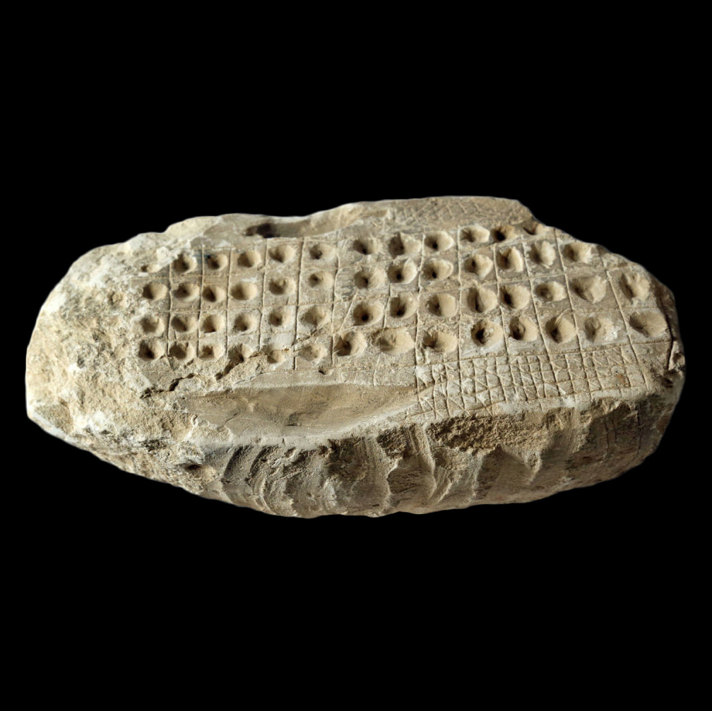 A game board, with 56 “holes”, made of stone, probably from the Roman period