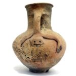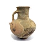 An anthropomorphic Jug with a schematic human face below the handle and two long hands on its sides. Iron Age 1.