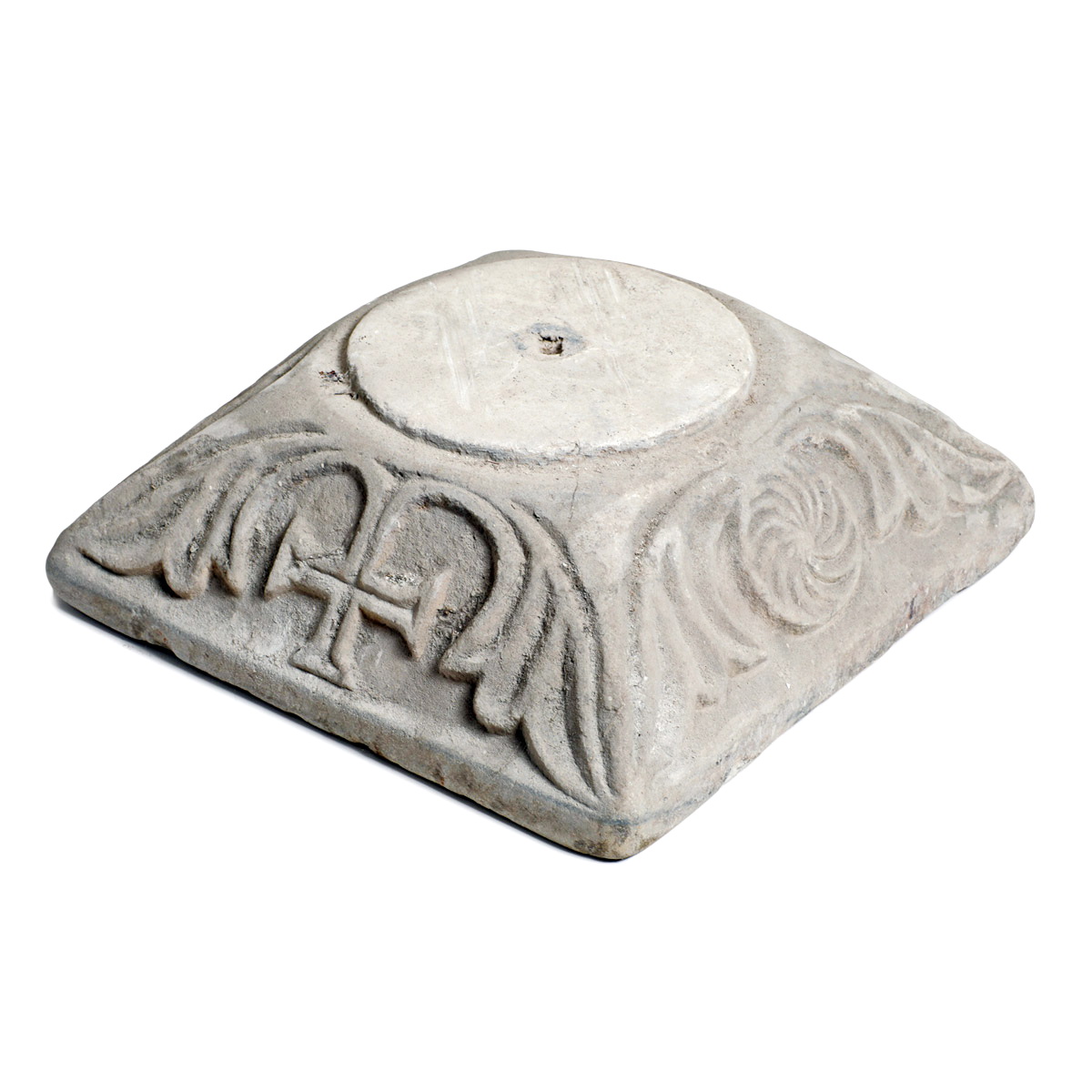 Marble pillar base with a cross. The Byzantine period